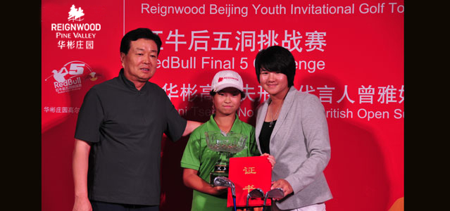 華彬旗下的紅牛,是為數(shù)不多的廣泛和長期贊助體育運動的著名品牌。紅牛后五洞挑戰(zhàn)賽,是華彬北京公開賽的保留項目,極富挑戰(zhàn)和觀賞性,會促使選手在后半程比賽中,加強耐力和意志力的提升,冠名后五洞比賽即表示紅牛愿支持選手,直到完成比賽的最后一桿。這次邀請賽也保留了這個項目,由小選手劉雨琦獲得該項冠軍。華彬集團總裁、紅牛公司總經(jīng)理王睿,為劉雨琦頒發(fā)了獎杯。