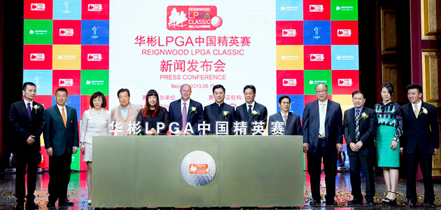 發(fā)布會(huì)上,華彬集團(tuán)董事長嚴(yán)彬博士與美國女子職業(yè)高爾夫協(xié)會(huì)(LPGA)官員Jon Podany、中國高爾夫球協(xié)會(huì)(CGA)官員張小寧、中國女子職業(yè)高爾夫球巡回賽(CLPGA)官員潘仲光、北京市體育局領(lǐng)導(dǎo)許廣樹,昌平區(qū)常委、宣傳部長余俊生以及IMG國際管理集團(tuán)領(lǐng)導(dǎo)朱亞當(dāng)和中國大陸LPGA大滿貫第一人馮珊珊出席了本次新聞發(fā)布會(huì)。