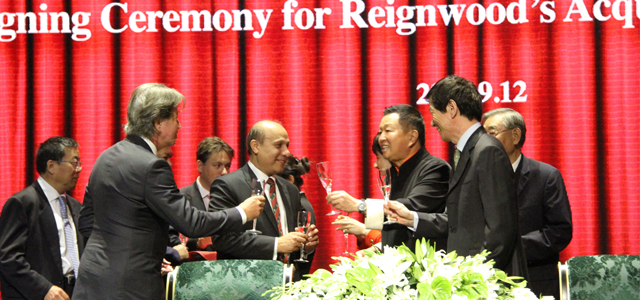 溫特沃斯前任主人Caprice集團董事長理查德-克爾茵(Richard Caring)與華彬集團副總裁、英國華彬投資有限公司總經(jīng)理倪松華共同簽約。隨后,雙方舉杯共慶這一歷史性時刻。嚴彬博士特地向理查德-克爾茵(Richard Caring)授予溫特沃斯球場終身榮譽會員資格。