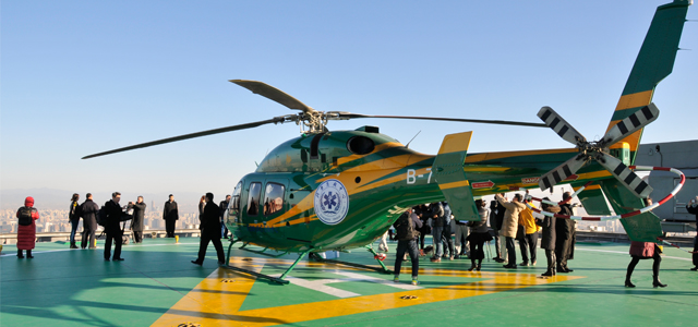 2015年1月6日上午,“巔峰?啟航”中國(guó)國(guó)際貿(mào)易中心國(guó)貿(mào)大廈頂層停機(jī)坪正式啟動(dòng),一架120航空醫(yī)療救援直升機(jī)和一架商務(wù)直升機(jī)先后降落在北京國(guó)貿(mào)大廈頂層停機(jī)坪,國(guó)貿(mào)中心、北京急救中心、華彬天星通航的三方代表出席京城第一高樓的停機(jī)坪?jiǎn)⒂脙x式。